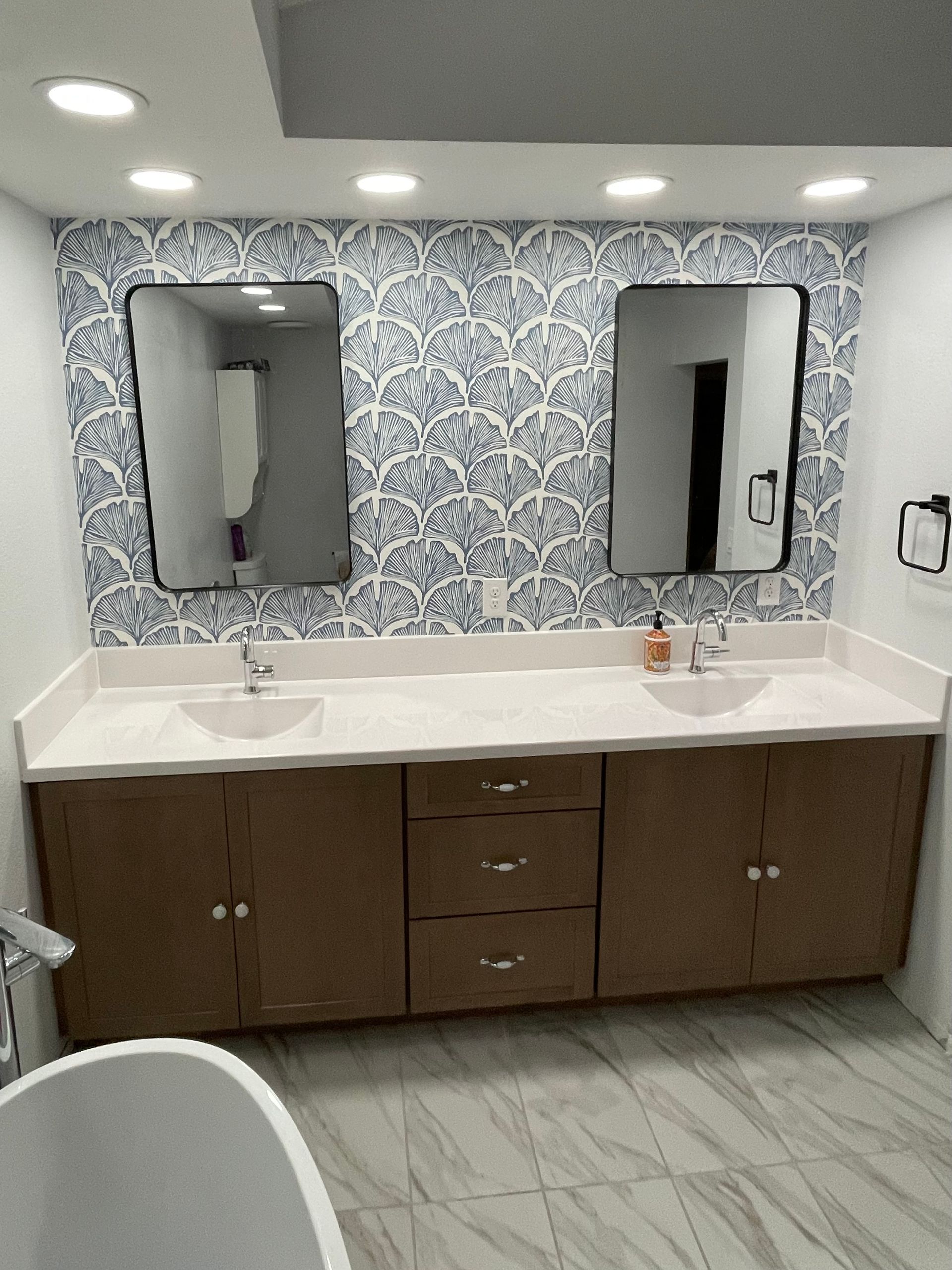 Our vanity tops are crafted from high-quality cultured marble installed service materials, offering a perfect blend of elegance and durability.